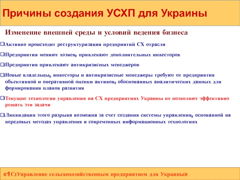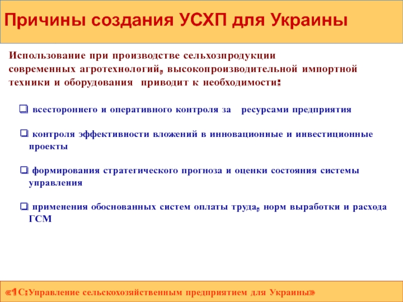 Текущие технологии управления на СХ предприятиях Украины не позволяют эффективно решать эти задачи