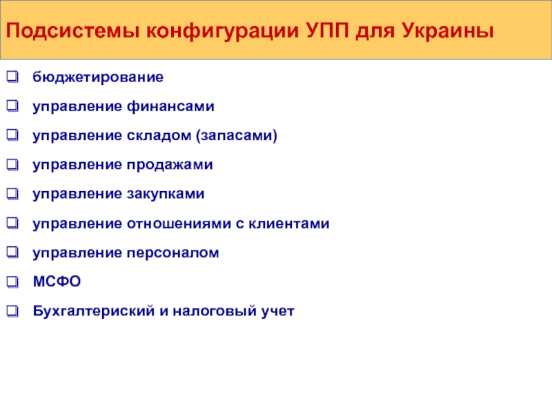 Слайд 100Подсистемы конфигурации УПП для Украины