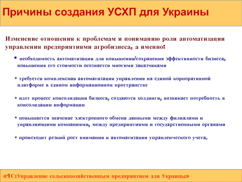 к проблемам и пониманию роли автоматизации управления предприятиями агробизнеса, а именно: