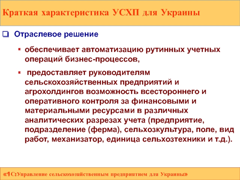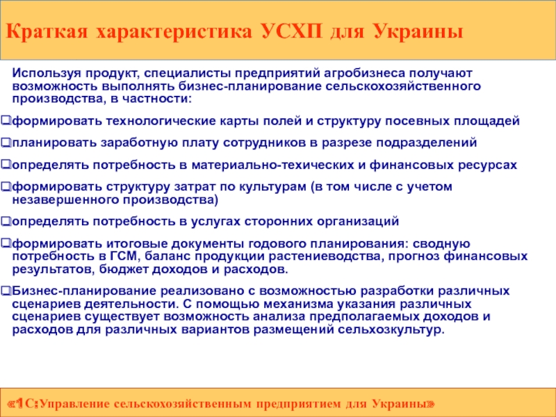 «1С:Предприятие 8 «Управление сельскохозяйственным предприятием для Украины» (УСХП).