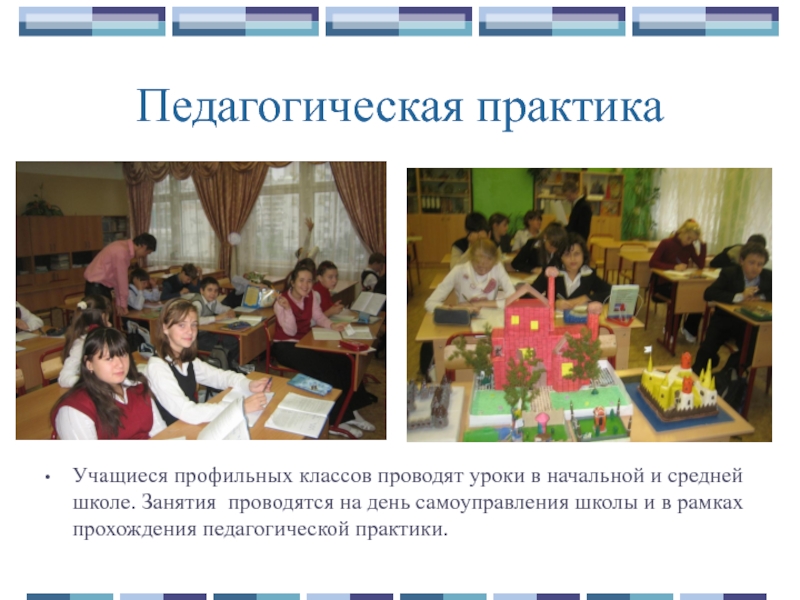 Учащиеся профильных классов проводят уроки в начальной и средней школе.