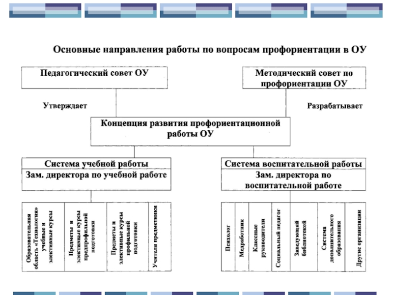 Работа с родителями: проведение родительских собраний, индивидуальные беседы педагогов с родителями школьников, анкетирование родителей учащихся, привлечение родителей школьников для выступлений перед учащимися с беседами, избрание родительского комитета школы из представителей родительских комитетов классов, наиболее активных родителей учащихся, готовых в сотрудничестве с учителями оказывать педагогическую поддержку самоопределения школьников.