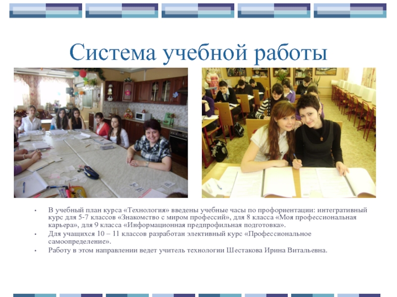профориентации: интегративный курс для 5-7 классов «Знакомство с миром профессий», для 8 класса «Моя профессиональная карьера», для 9 класса «Информационная предпрофильная подготовка».