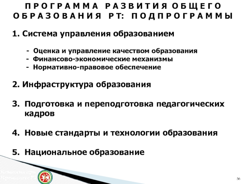 О Б Р А З О В А Н И Я Р Т: П О Д П Р О Г Р А М М Ы