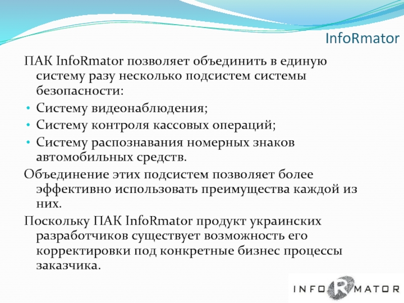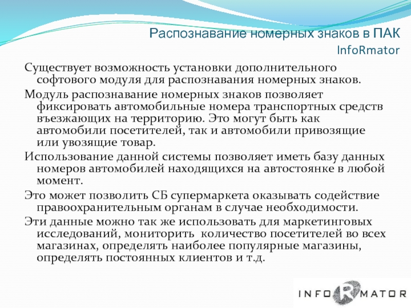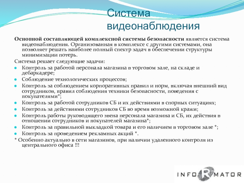 Возможность безболезненного включения системы безопасности в торговый менеджмент и, по возможности, решение техническими системами каких-то маркетинговых вопросов;