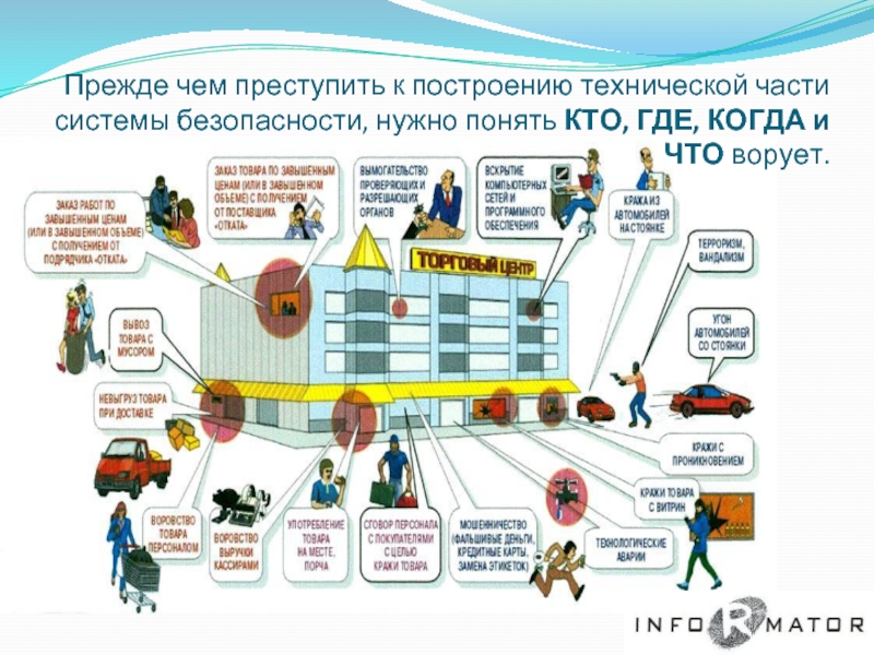 Разработку системы надежной технической и физической защиты материальных ценностей и имущества магазина, охраняемых службой безопасности;