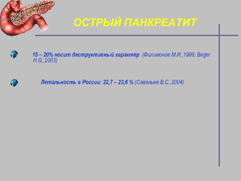Летальность в России: 22,7 – 23,6 % (Савельев В.С.,2004)