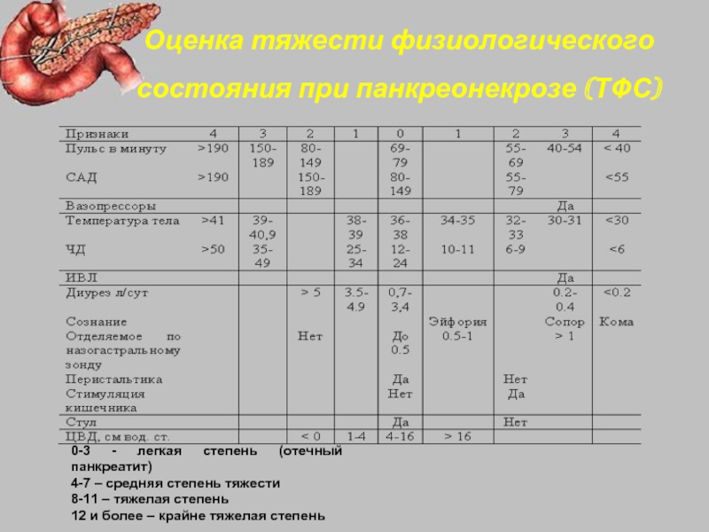 Контроль эффективности проводимой многоцелевой терапии осуществляется ежедневной общей оценкой клинической картины, динамики изменения лабораторных показателей, прокальцитонинового теста, показателей шкалы APACHE II и Ranson в сочетании с анализом данных инструментальных методов исследования (УЗИ, КТ,МРТ)