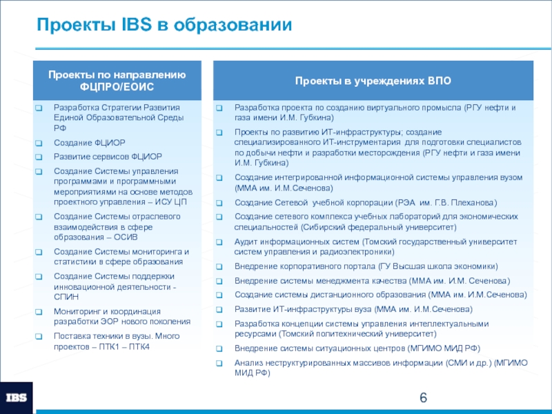 Проекты IBS в образовании
