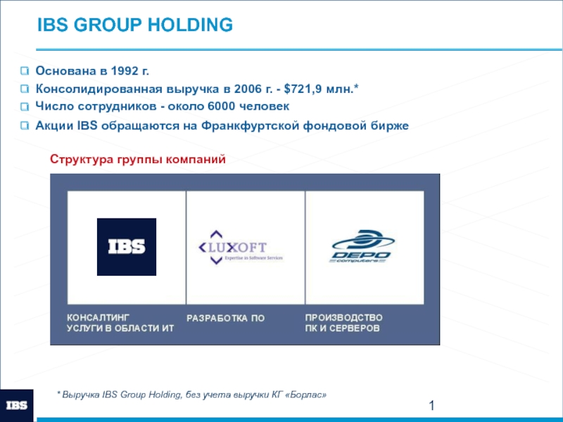 * Выручка IBS Group Holding, без учета выручки КГ «Борлас»