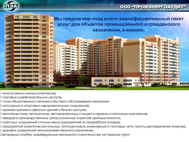 Мы предлагаем «под ключ» квалифицированный пакет услуг для объектов промышленного и гражданского назначения, а именно:
