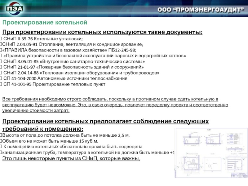 Все требования необходимо строго соблюдать, поскольку в противном случае сдать котельную в эксплуатацию будет невозможно. Это, в свою очередь, повлечет переделку проекта и соответственно увеличение стоимости затрат.
