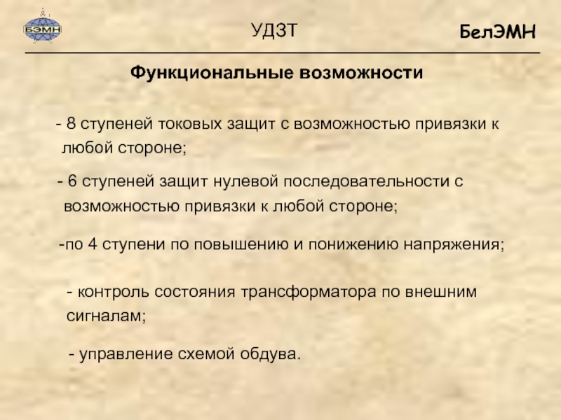 6 ступеней защит нулевой последовательности с возможностью привязки к любой стороне;