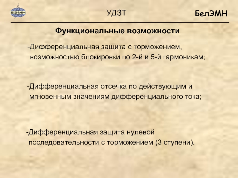 Данная защита определяет замыкания на землю в силовых трансформаторах, нейтраль которых заземлена. Необходимым условием для работы этой защиты является установка ТТ в нейтрали и трёх ТТ в фазах