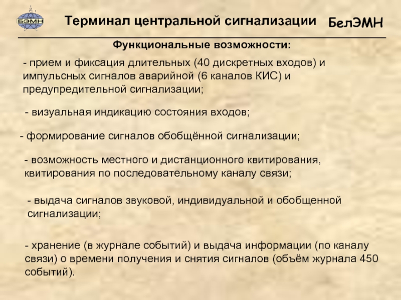 - выдача сигналов звуковой, индивидуальной и обобщенной сигнализации;