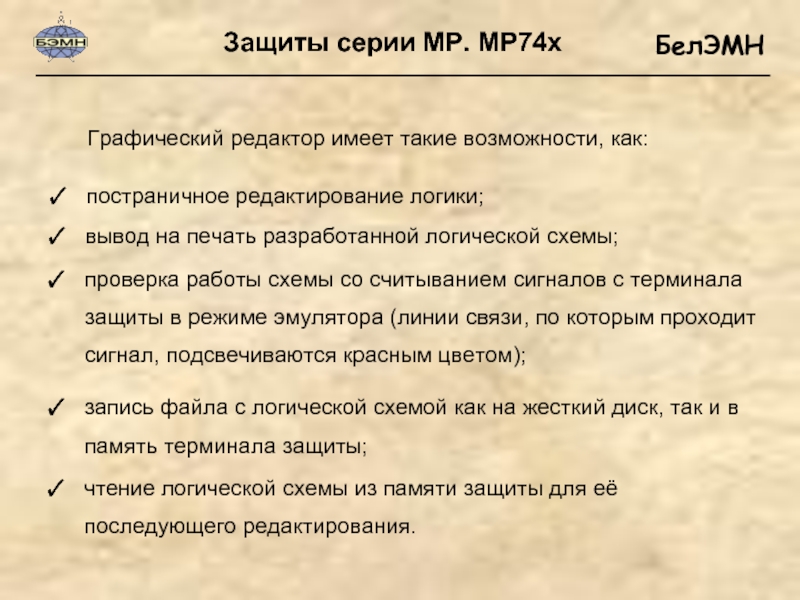 Логическая программа на СПЛ может включать до 250 функциональных блоков. Это позволяет реализовывать любые идеи проектантов и наладчиков по организации системы релейной защиты и автоматики на присоединениях 6-35 кВ.
