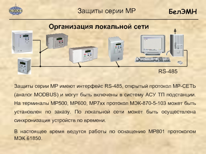 МР100 контролирует положение автомата, успешность отключения, имеет журнал событий, 485 и 232-й интерфейсы связи и может быть интегрирован в систему АСУ.