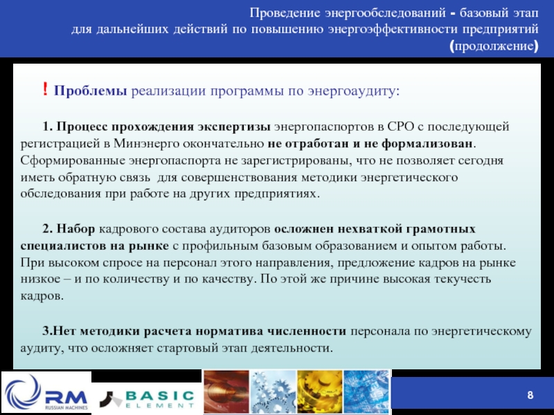 3.Нет методики расчета норматива численности персонала по энергетическому аудиту, что осложняет стартовый этап деятельности.