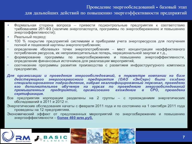 Формальная сторона вопроса – привести подконтрольные предприятия к соответствию требованиям 261-ФЗ (наличие энергопаспорта, программы по энергосбережению и повышению энергоэффективности);