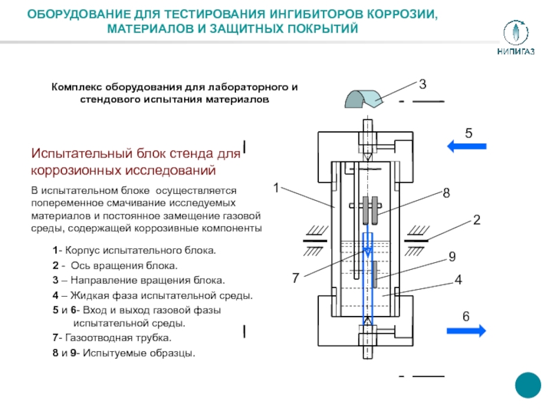 В испытательном блоке осуществляется попеременное смачивание исследуемых материалов и постоянное замещение газовой среды, содержащей коррозивные компоненты