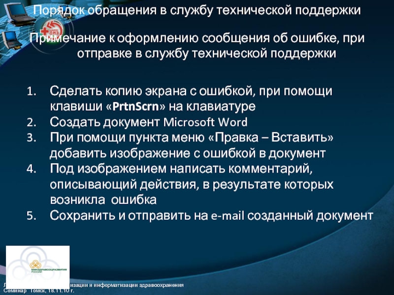 Сделать копию экрана с ошибкой, при помощи клавиши «PrtnScrn» на клавиатуре