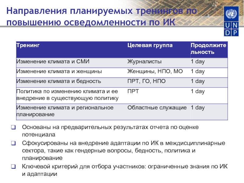 Слайд 14Направления планируемых тренингов по повышению осведомленности по ИК