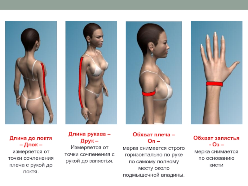 мерка снимается строго горизонтально по руке по самому полному месту около подмышечной впадины.
