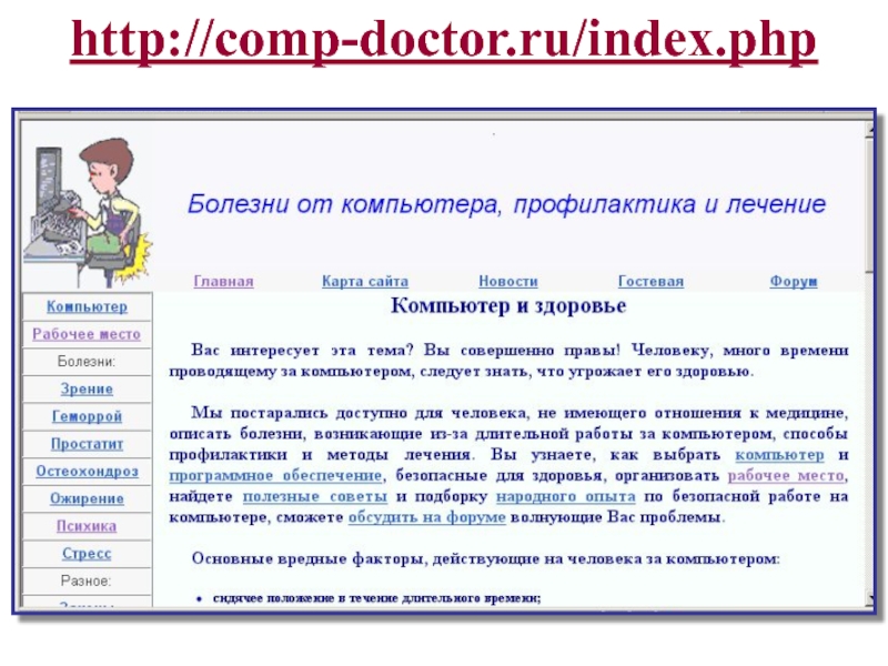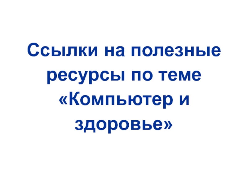 Слайд 32Ссылки на полезные ресурсы по теме «Компьютер и здоровье»