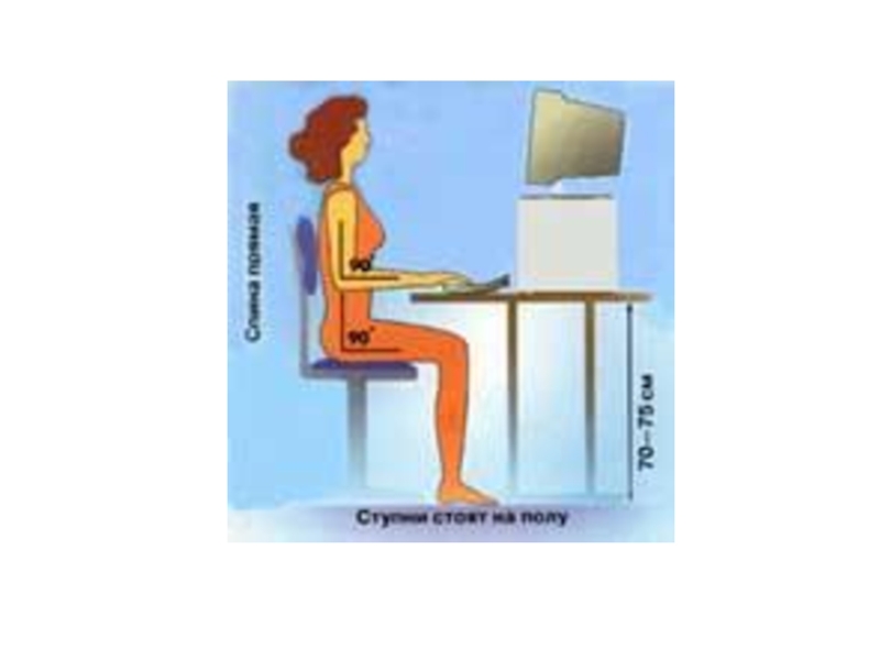 Слайд 24Идеальная поза оператора компьютера
