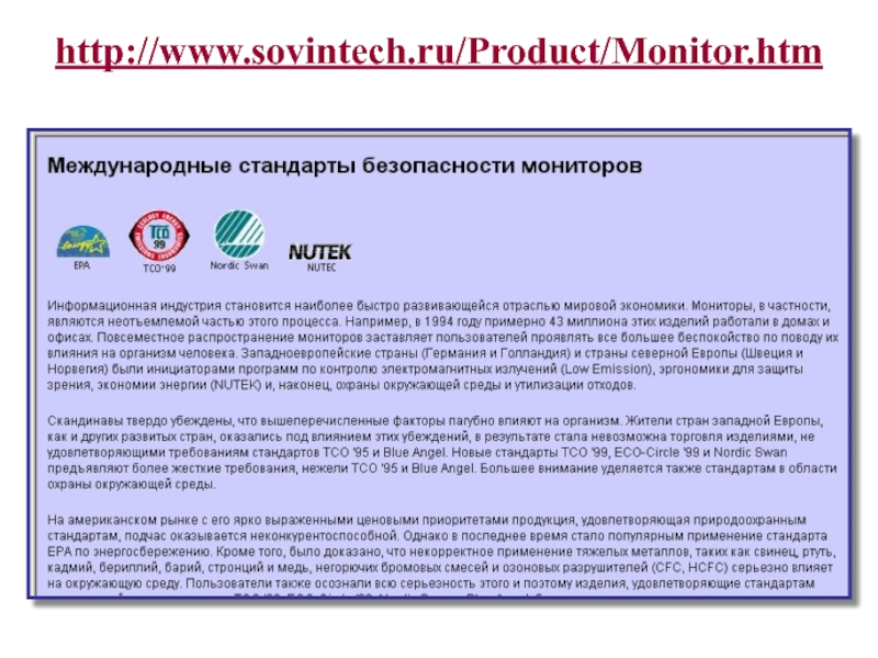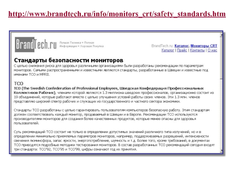 Слайд 38http://www.brandtech.ru/info/monitors_crt/safety_standards.htm