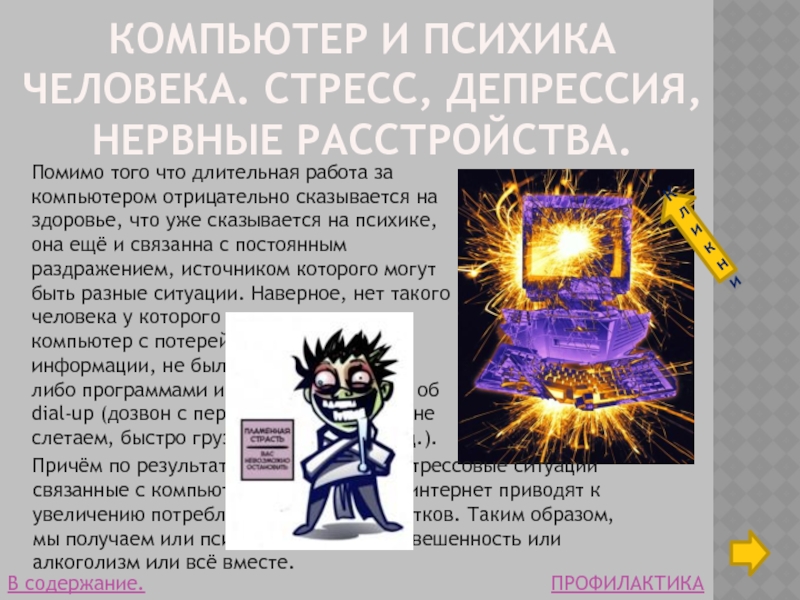 д) Компьютер и психика человека. Стресс, депрессия, нервные расстройства.