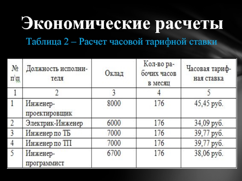 Таблица 2 – Расчет часовой тарифной ставки