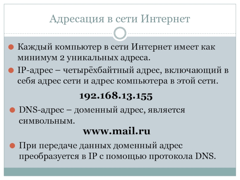 DNS-адрес – доменный адрес, является символьным.