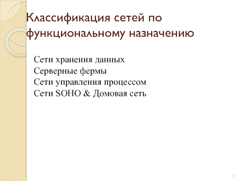 Слайд 17Классификация сетей по функциональному назначению