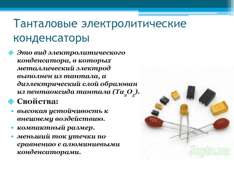 тантала, а диэлектрический слой образован из пентаоксида тантала (Ta2O5).
