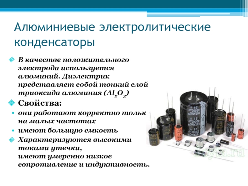 В качестве положительного электрода используется алюминий. Диэлектрик представляет собой