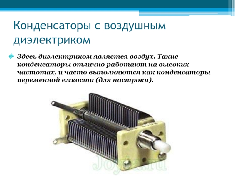 Слайд 11Конденсаторы с воздушным диэлектриком