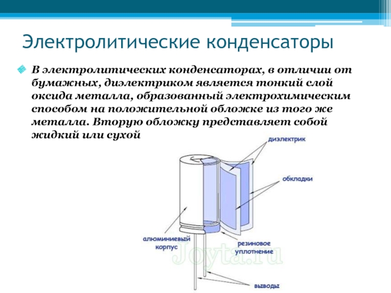 В электролитических конденсаторах, в отличии от бумажных, диэлектриком является тонкий