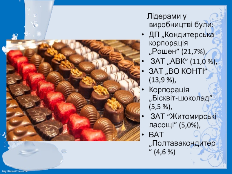 ДП „Кондитерська корпорація „Рошен” (21,7%),