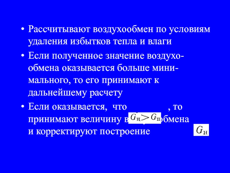 Рассчитывают воздухообмен по условиям удаления избытков тепла и влаги