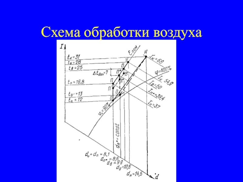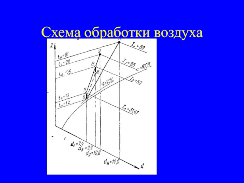 процесса изменения воздуха в помещении с угловым коэффициентом.