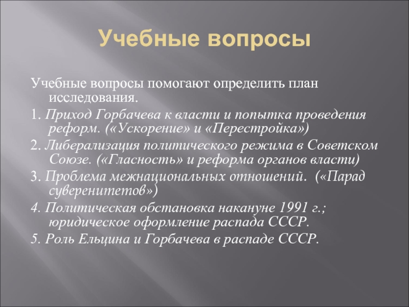 Учебные вопросы помогают определить план исследования.