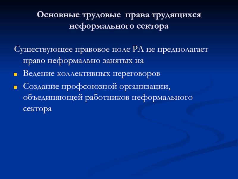 Слайд 8Основные трудовые права трудящихся неформального сектора