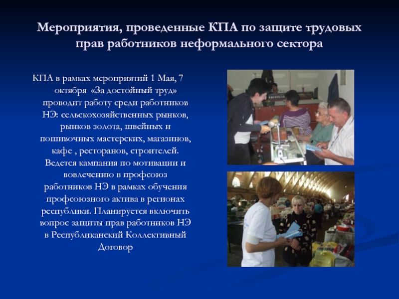 Слайд 11Мероприятия, проведенные КПА по защите трудовых прав работников неформального сектора