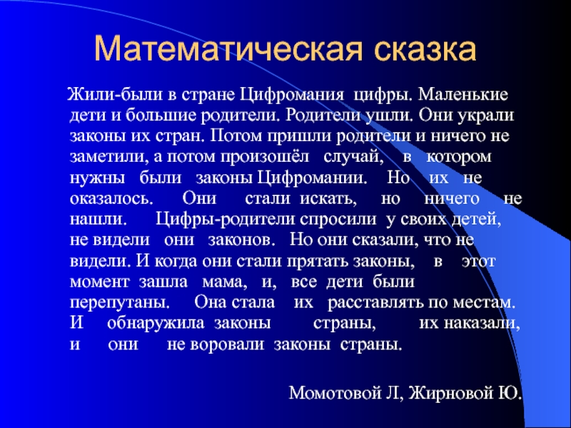 Слайд 7Математическая сказка