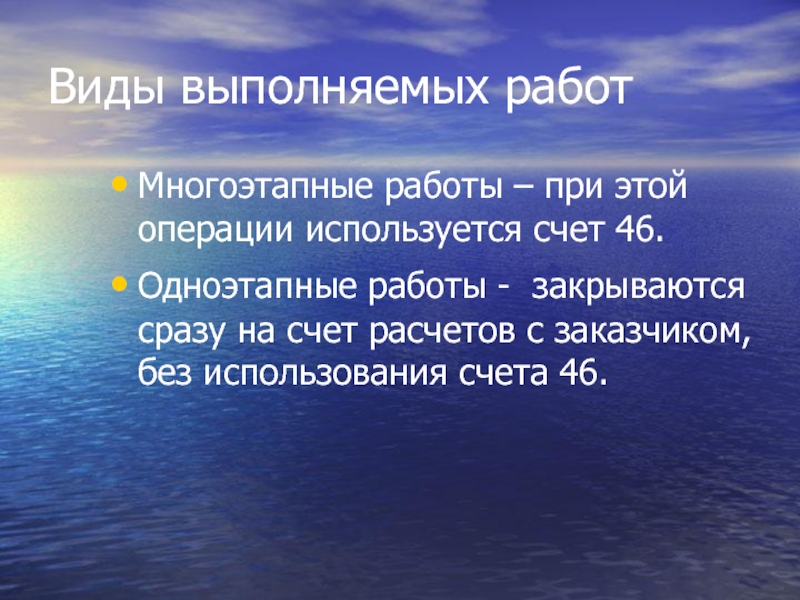 работы - закрываются сразу на счет расчетов с заказчиком, без использования счета 46.