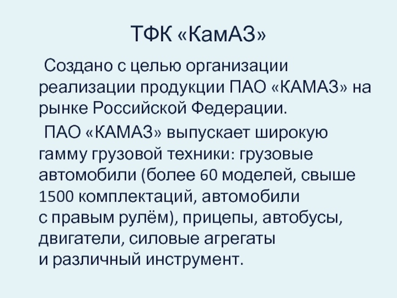 Создано с целью организации реализации продукции ПАО «КАМАЗ» на рынке