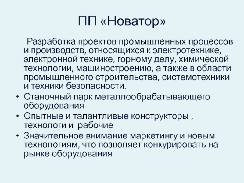 Значительное внимание маркетингу и новым технологиям, что позволяет конкурировать на рынке оборудования