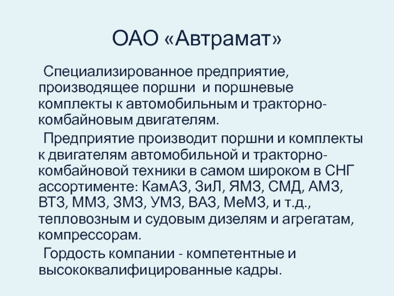 Является одним из ведущих российских предприятий, выпускающих поршни