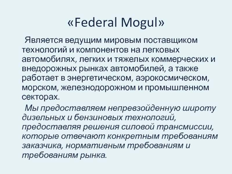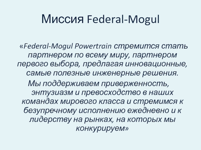 «Federal-Mogul Powertrain стремится стать партнером по всему миру, партнером первого